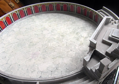 I quite like the overall effect, it does brighten the whole thing up and there is some (though very little) archaeological evidence that the walls of the many arenas may have been painted.